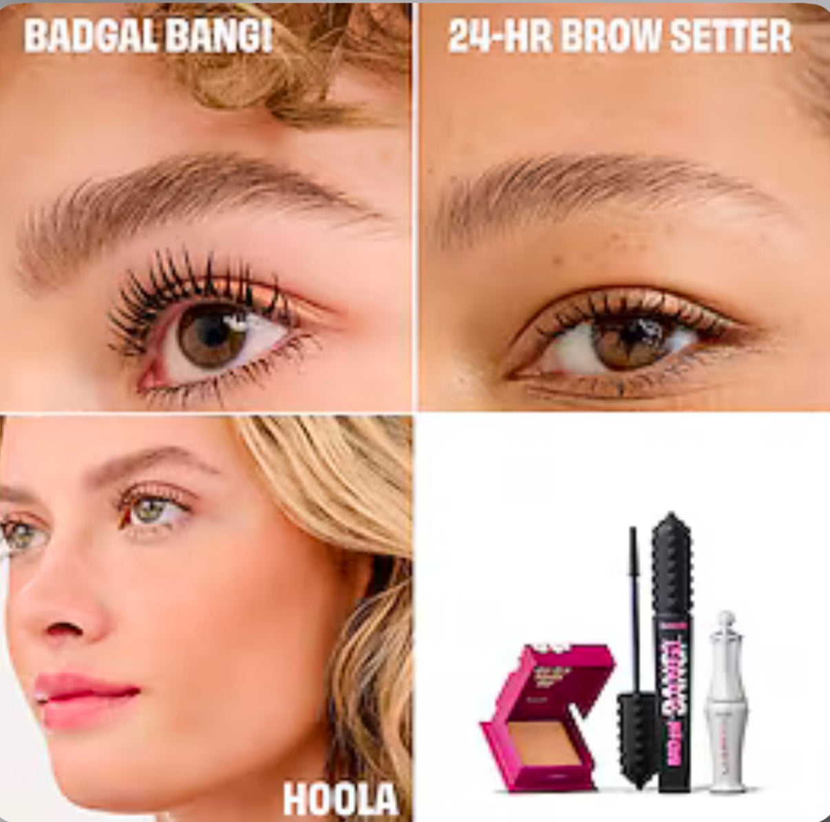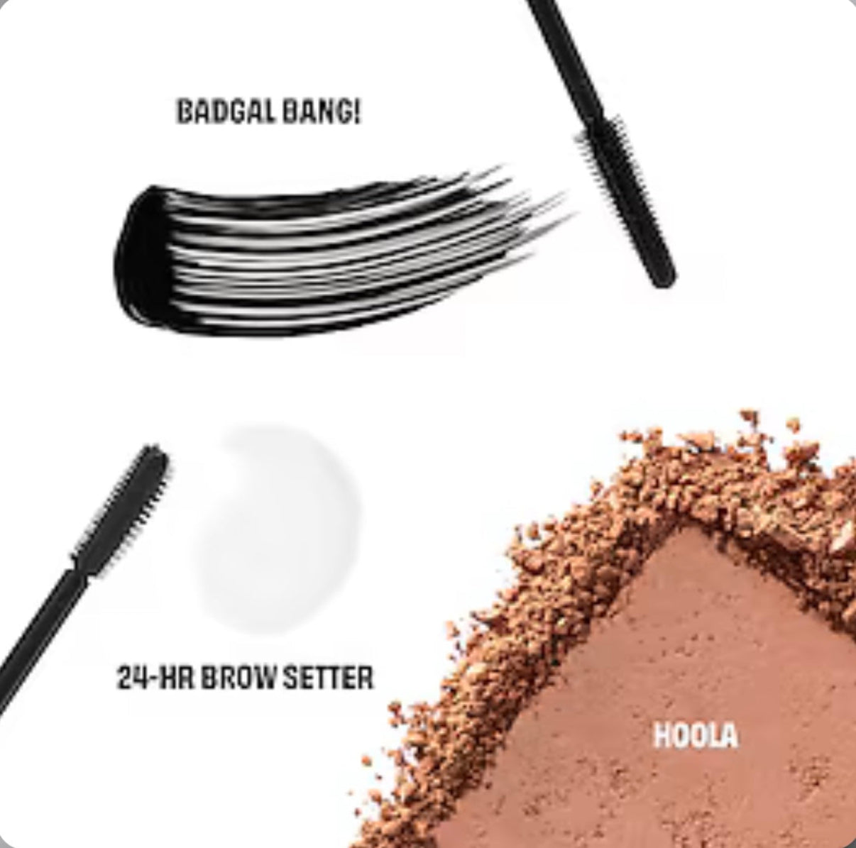 Commencez votre make-up avec le mascara volume BADgal BANG!, en grand format, qui offre un volume spectaculaire à 360° avec jusqu'à 36 heures de tenue (*test instrumental sur 21 participantes). Fixez ensuite vos sourcils toute la journée grâce au gel fixateur transparent 24-HR Brow Setter, en format mini, et terminez avec un hâte chaud et naturel grâce à l'iconique poudre bronzante Hoola, en format mini.